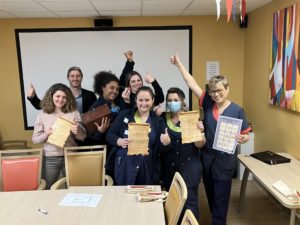 Le groupe de volontaire, composé d’infirmière, aide-soignante, ergothérapeute, agent de lingerie, auxiliaire de vie et du directeur lui-même, fut unanime sur l’intérêt de cet outil. Ce dernier est à la fois pédagogique et ludique.